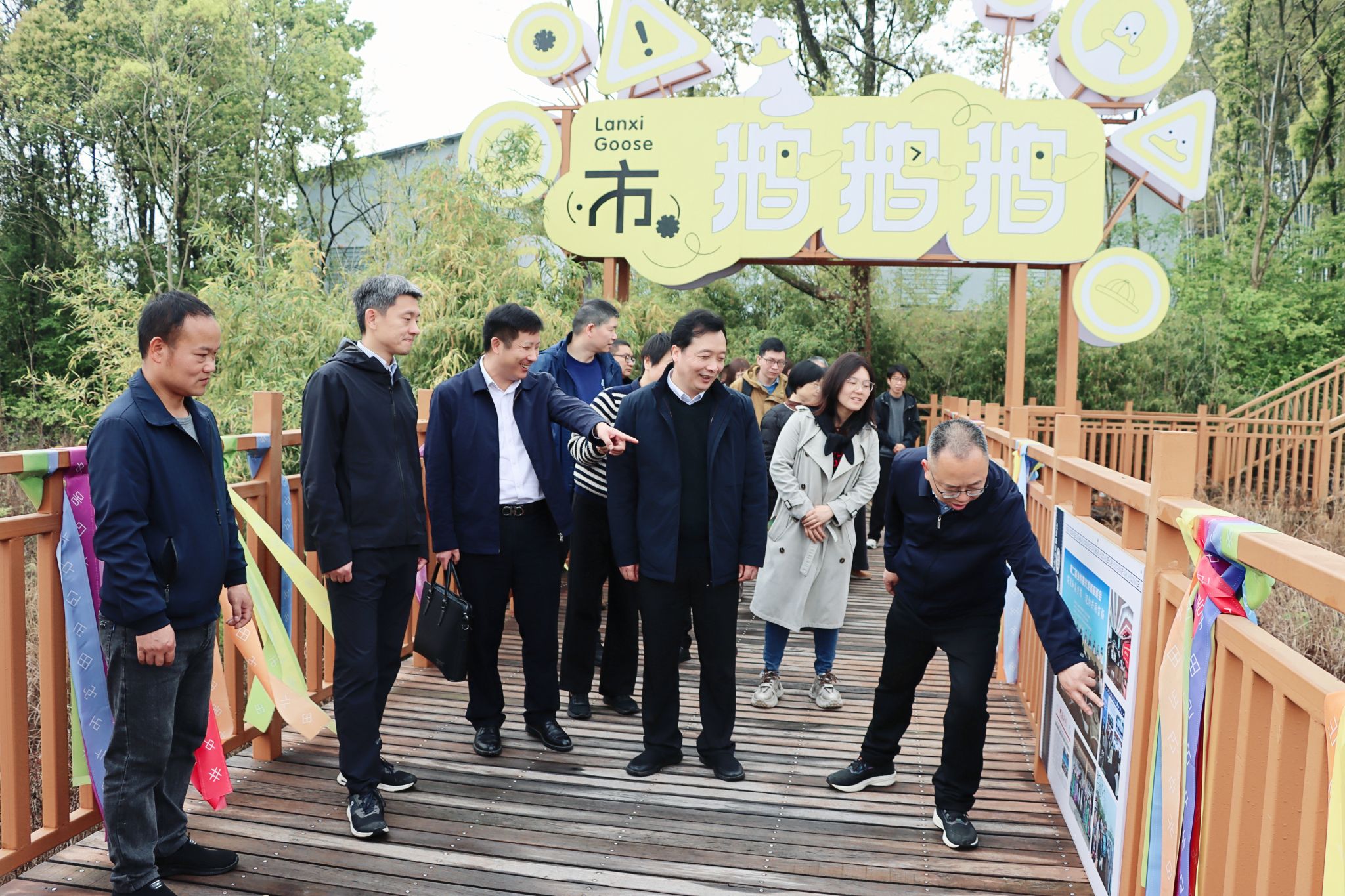在兰溪市,代表们来到民盟中央、民盟浙江省委结对帮扶对象,同时也是民盟浙江农林大学总支重点服务的乡村——游埠镇范院坞村。大家先后参观了范院坞红美人驿站、森林鹅馆,实地了解村庄特色产业发展、乡村振兴最新进展,并与兰溪市委统战部、民盟兰溪市委进行了座谈交流。座谈会上,徐爱俊介绍了民盟学校总支在深度参与范院坞村发展中开展的系列帮扶工作。他表示,学校将继续依托党派资源,精准对接区域产业链升级、果树种植、乡村人才培育等需求,持续赋能范院坞村推进乡村全面振兴。倪建均表示,民盟学校总支帮扶范院坞村建设成效突出,校地双方将立足良好合作基础,进一步紧密携手,推动范院坞村所在片区未来产业提质增效、乡村文化繁荣发展。